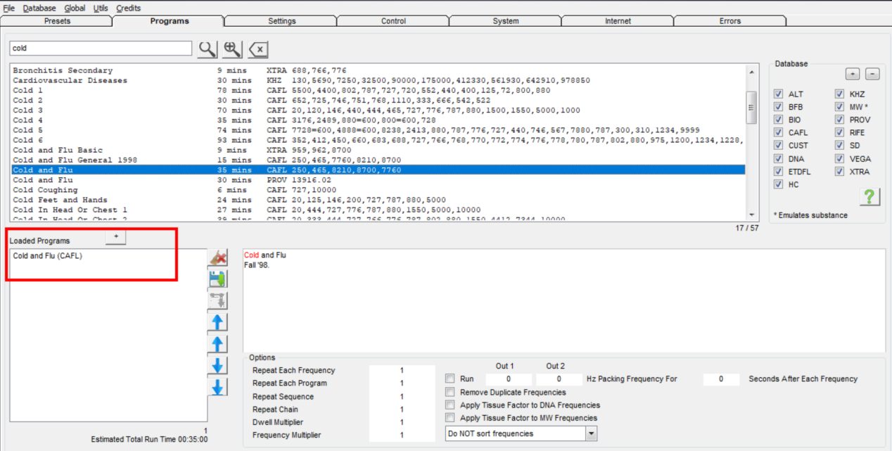 Please notice that you should not use Remote or Contact presets directly because this will damage your scalar machine. Instead, convert them to Scalar presets so that the rife frequencies can be successfully applied into the scalar field. Here, I will take the “cold” as an example